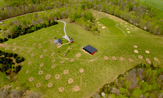 While popular in the Northern Plains and Canada, bale grazing is a relatively new concept to Kentucky, but one that is becoming more intriguing to farmers as they look for ways to be better stewards of the environment. In bale grazing, farmers set out hay bales on their land prior to winter feeding. They use temporary fencing to control the cattle’s access to the bales. As the cattle eat the bales, farmers move the temporary fencing to give them access to more. The movement of cattle gives farmers a better nutrient distribution across their land. This is particularly beneficial on land that has not received any other fertilization in recent years. In Thomas’ bale grazing trials, he places the forage on higher elevations, which limits the time cattle spend near the streams and creeks in the valleys.