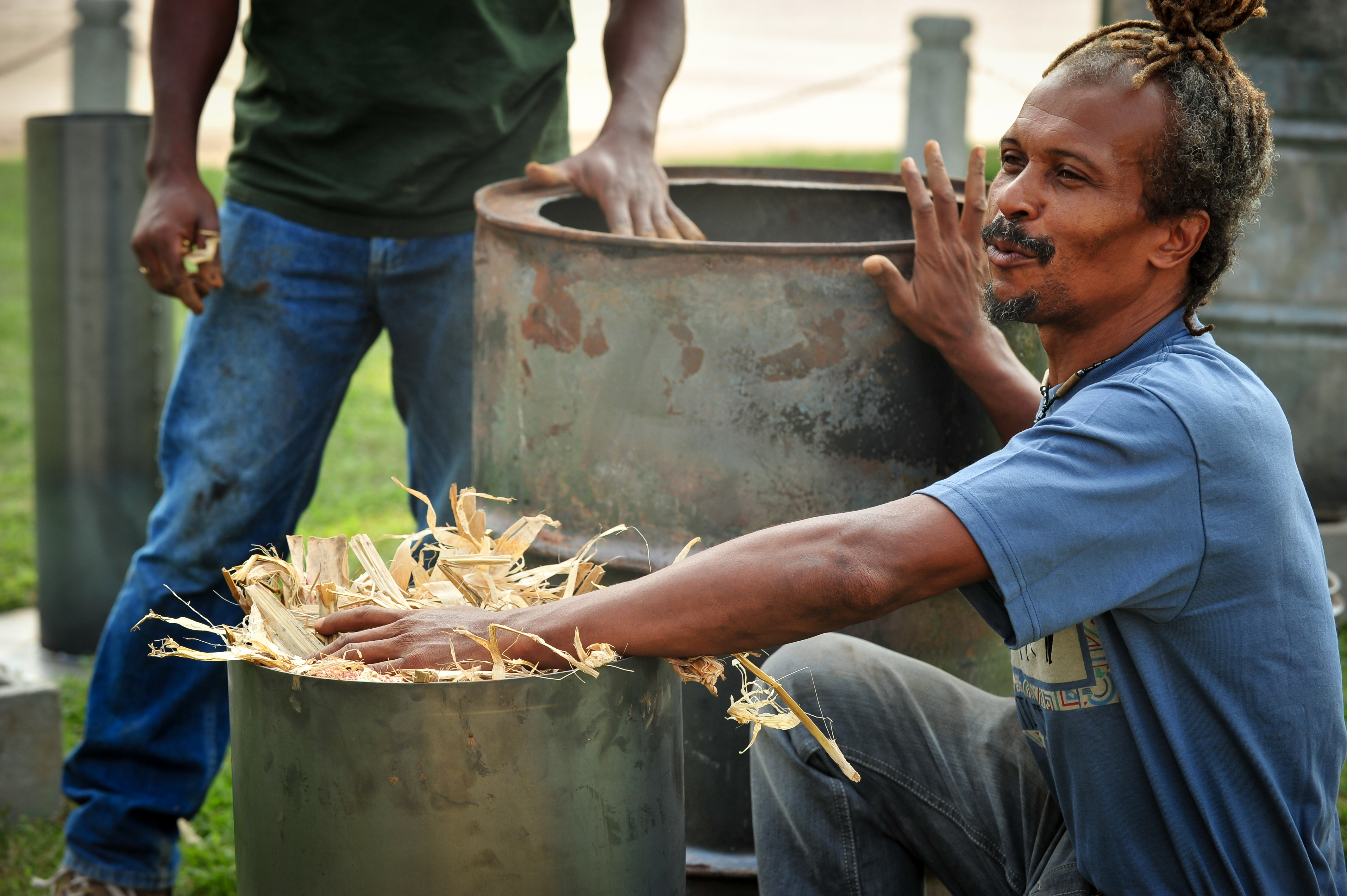 Catalis and Duplan did a demonstration on campus using 55-gallon drums filled with plant byproducts such as corn stover—material that would naturally degrade into greenhouse gases—to create biochar. Biochar is a name for charcoal made by burning biomass in a no- or low-oxygen environment. The process is actually hundreds of years old and results in a solid material that farmers can add to soils, make into briquettes and also produce oil and gas byproducts for fuel.