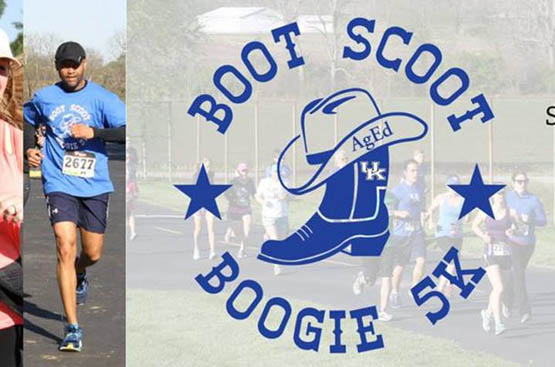 Everyone is invited to join the fun on Saturday, April 8, as the University of Kentucky Agricultural Education Society presents a run/walk event known as the Boot, Scoot, and Boogie 5K. Spindletop Hall, located off of Ironworks Pike, is the site for the fundraiser hosted by UK Community and Leadership Development together with UK Ag Education.