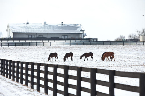 The average horse, with a lower activity level, should eat between 1.5 and 2 percent of its body weight in feed per day to maintain its weight. UK equine specialist Bob Coleman said that feed requirement goes up in the winter, as the horse uses more calories to keep warm. He recommended providing extra hay and making sure horses have shelter to get out of windy, damp weather. He said it’s also important for horses to have access to clean, unfrozen water.
