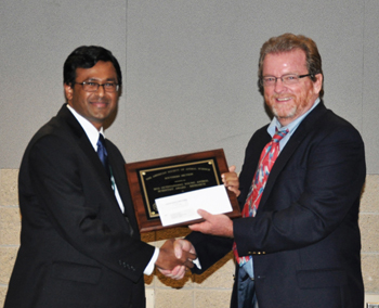 University of Kentucky researcher Surendranath Suman accepted the Young Animal Scientist in Research Award from the American Society of Animal Science Southern Section in a recognition ceremony Feb. 6. Suman, an assistant professor in the Department of Animal and Food Sciences in the College of Agriculture, studies proteomics, specifically, the interactions between proteins in meat.