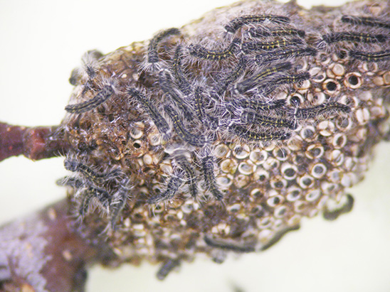 “Egg hatch is relatively random and occurs over an extended period. This increases the chance for survival in case of late freezes,” Townsend said. “In addition, the small but hardy caterpillars will remain clustered on egg masses to ‘wait out’ temperatures that are too low for feeding and development. ETC grow and develop when the temperature is above 37 degrees F.”