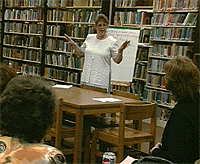 Although Adkins also works with teachers indoors, she says the ultimate goal is to get teachers and students out of their classrooms and involved in hands-on activity so that students can apply what they've studied.