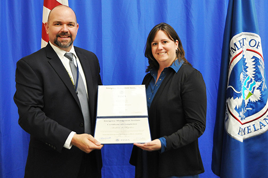 Higdon and other emergency managers from across the United Statescompleted the five courses in the Basic Academy that includes Foundations of Emergency Management; Science of Disaster; Planning: Emergency Operations; Exercise Design; and Public Information and Warning. To graduate, she fulfilled a total of 152 hours of training.