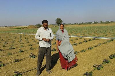 Whereas the systems he tested in Myanmar relied exclusively on gravity to move water, he recently has tested systems that combine gravity and small, solar-powered pumps. He collaborated with engineers from Ball Aerospace in 2014 to combine low-powered solar pumps of approximately one horsepower with ultra low-pressure drip irrigation in Gujarat state in India. They used the pumps to raise water from open wells to small tanks located about 5 feet above the field, at which point gravity took over to irrigate about an acre of vegetables.