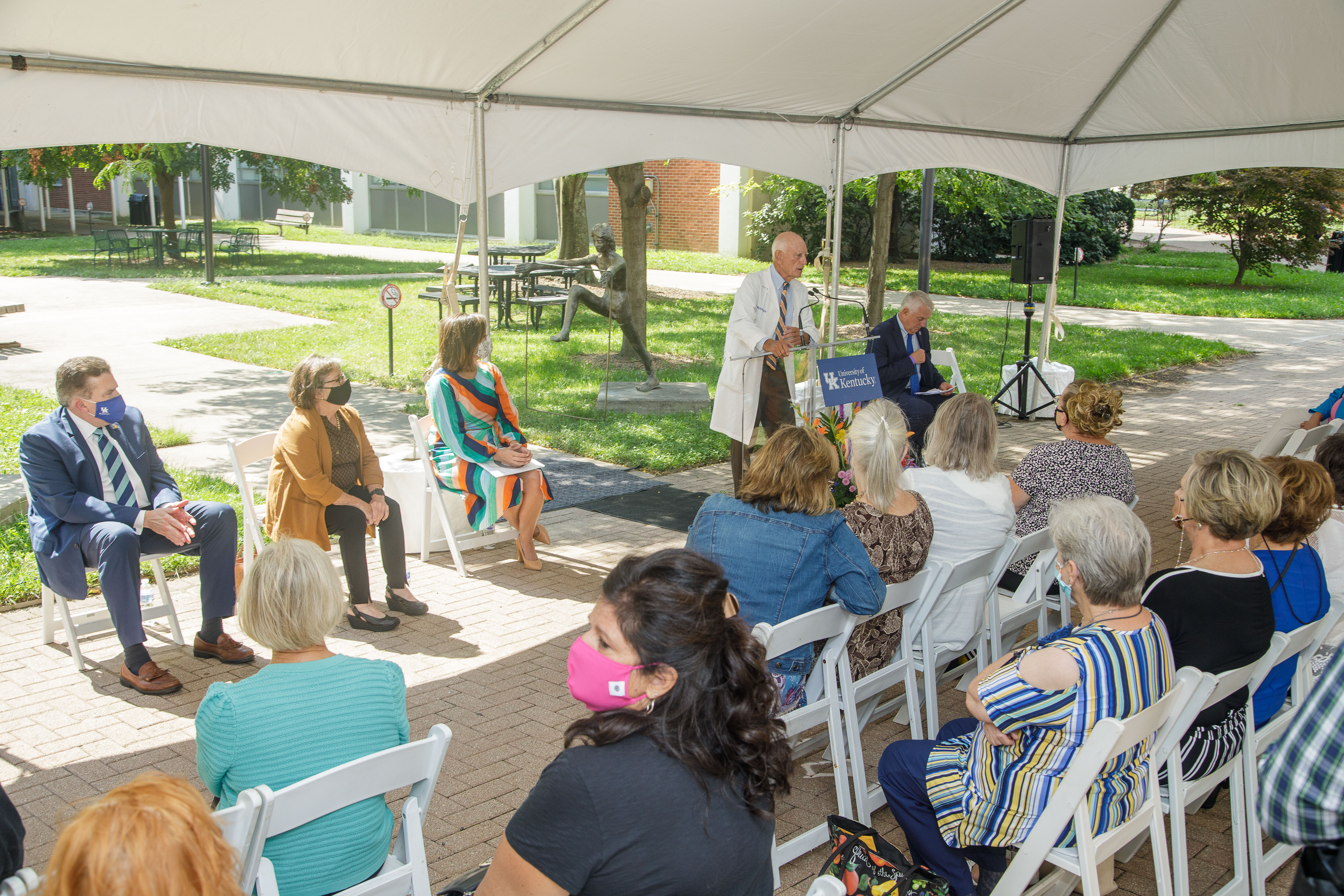 Joining Coleman in person to talk about the program were Markey gynecologic oncologist John R. van Nagell Jr.. M.D.; Nancy Cox, vice president for land-grant engagement and dean of the UK College of Agriculture, Food and Environment; and Mark F. Newman, M.D., UK executive vice president for health affairs.