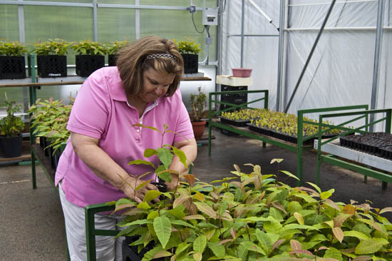 Which is exactly what happened. In January, 500 American chestnut seeds were planted, with the intent of taking 100 seedlings to Pennsylvania in April to be planted at the Flight 93 National Memorial near Shanksville and using another 200 in reforestation efforts in Eastern Kentucky. Of the remaining seedlings, some were distributed to kids from military families at a Military Day celebration at Keeneland and the public received the rest at various Arbor Day celebrations. Around the same time, 1,000 redbud and 1,000 dogwood seeds were planted for extension agents in neighboring counties who were planning Arbor Day and Earth Day giveaways. And tucked away in the back of the greenhouse, Belcher and her staff planted pots of tomatoes, onions, peppers and carrots that are destined for the center’s kitchen.