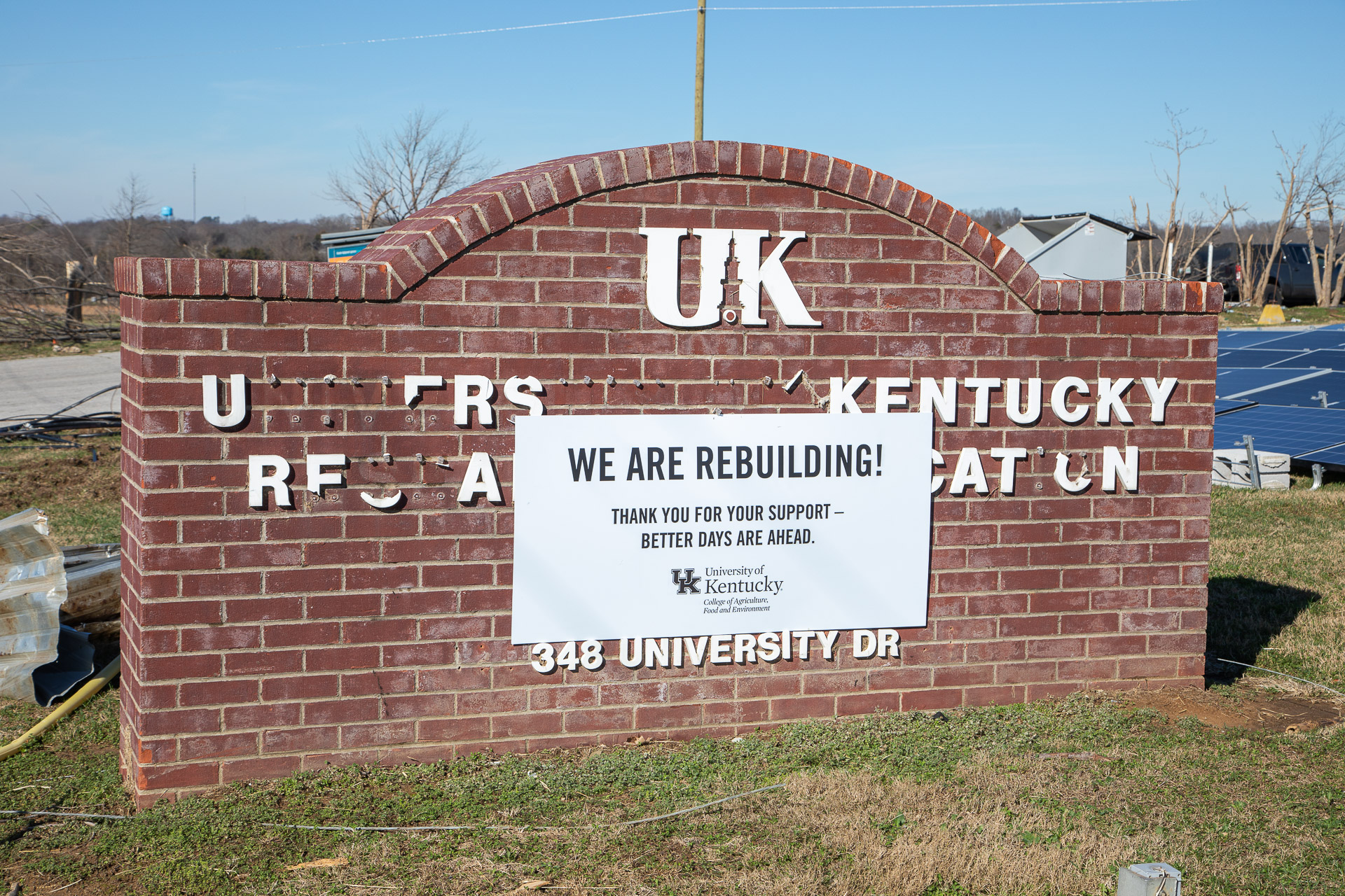 The UK College of Agriculture, Food and Environment is working with the university’s insurance adjusters to determine the extent of the damage to facilities and equipment after the center took a direct hit from an EF-4 tornado Dec. 10. UK officials expect 49 of the center’s 58 buildings to be a complete loss.