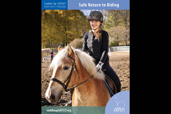 “Safe Return to Riding” covers topics that include what to do immediately after an accident, preparing for an injury, and returning to riding after a significant injury or long illness. It contains a newly developed equestrian injury and concussion assessment tool and gives information about calories burned during 30 minutes of activity, safety and helmets.