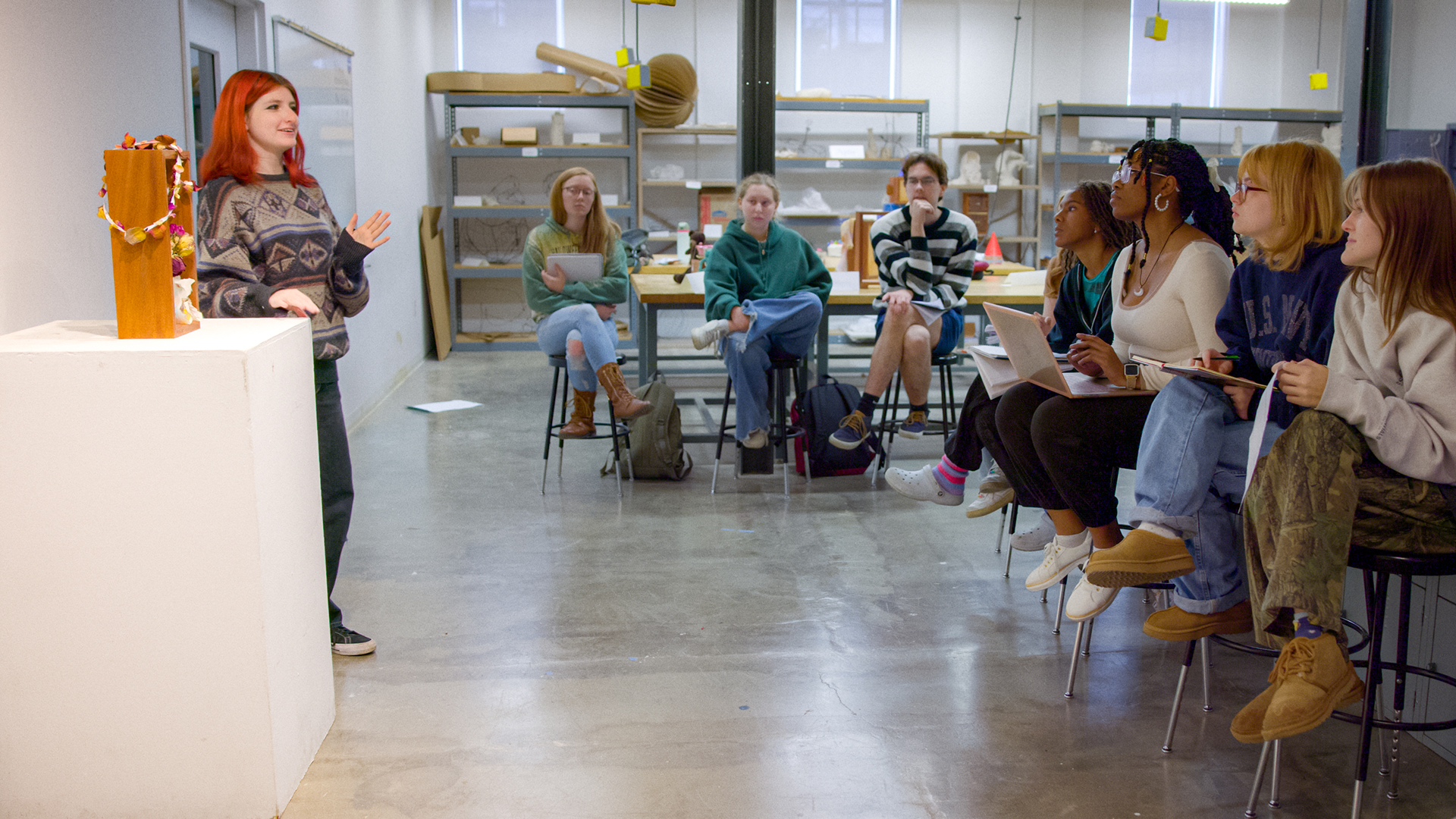 That was pretty much all Hartman knew about mahogany, and as a photographer, she hadn’t worked with wood or other sculpture materials used in Goodwin’s 3D Foundations class this fall.