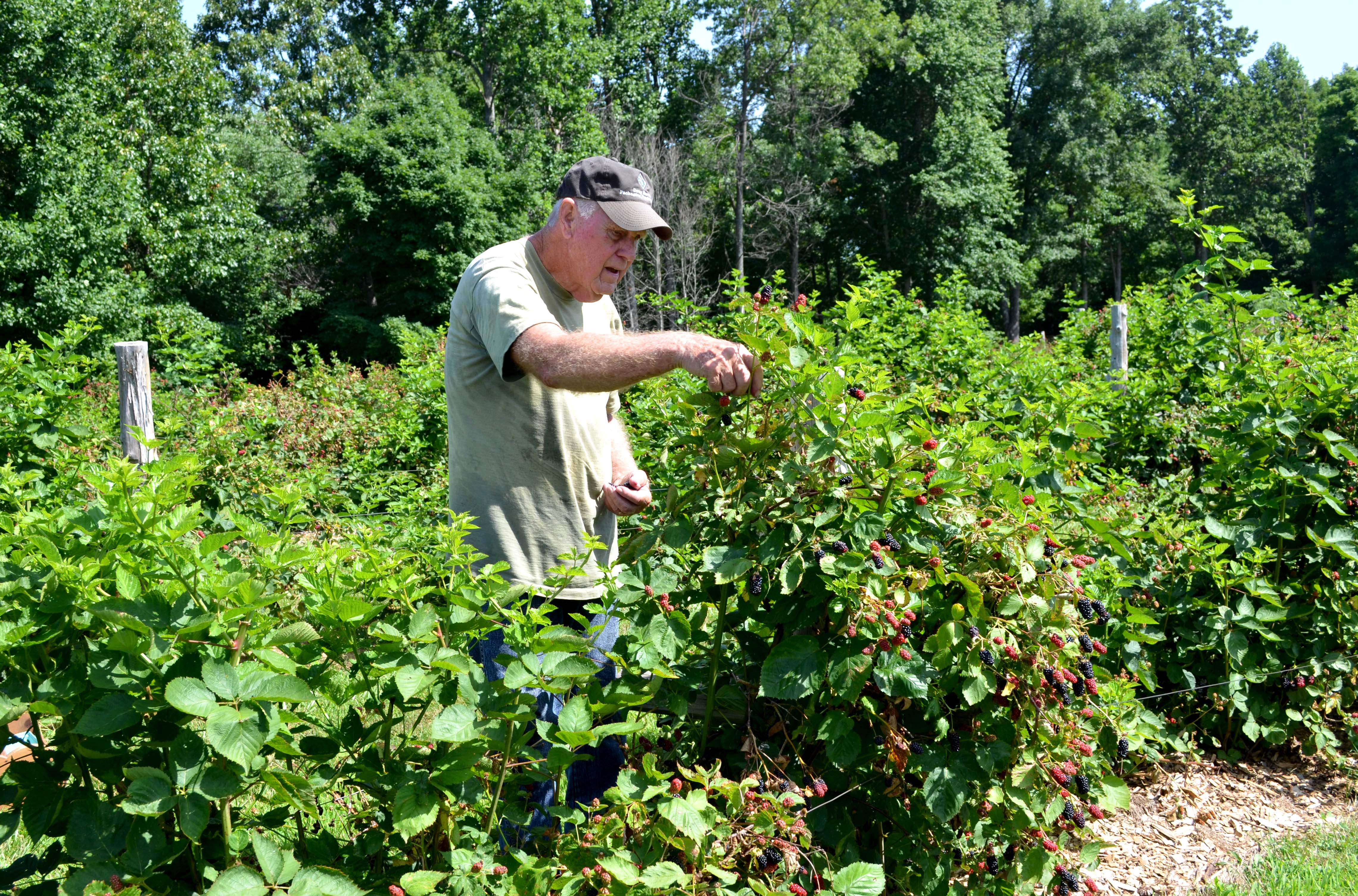 On a hot, humid Kentucky summer morning, Bennie Winn methodically handpicks blackberries and places them in quart-size containers on his Muhlenberg County farm.