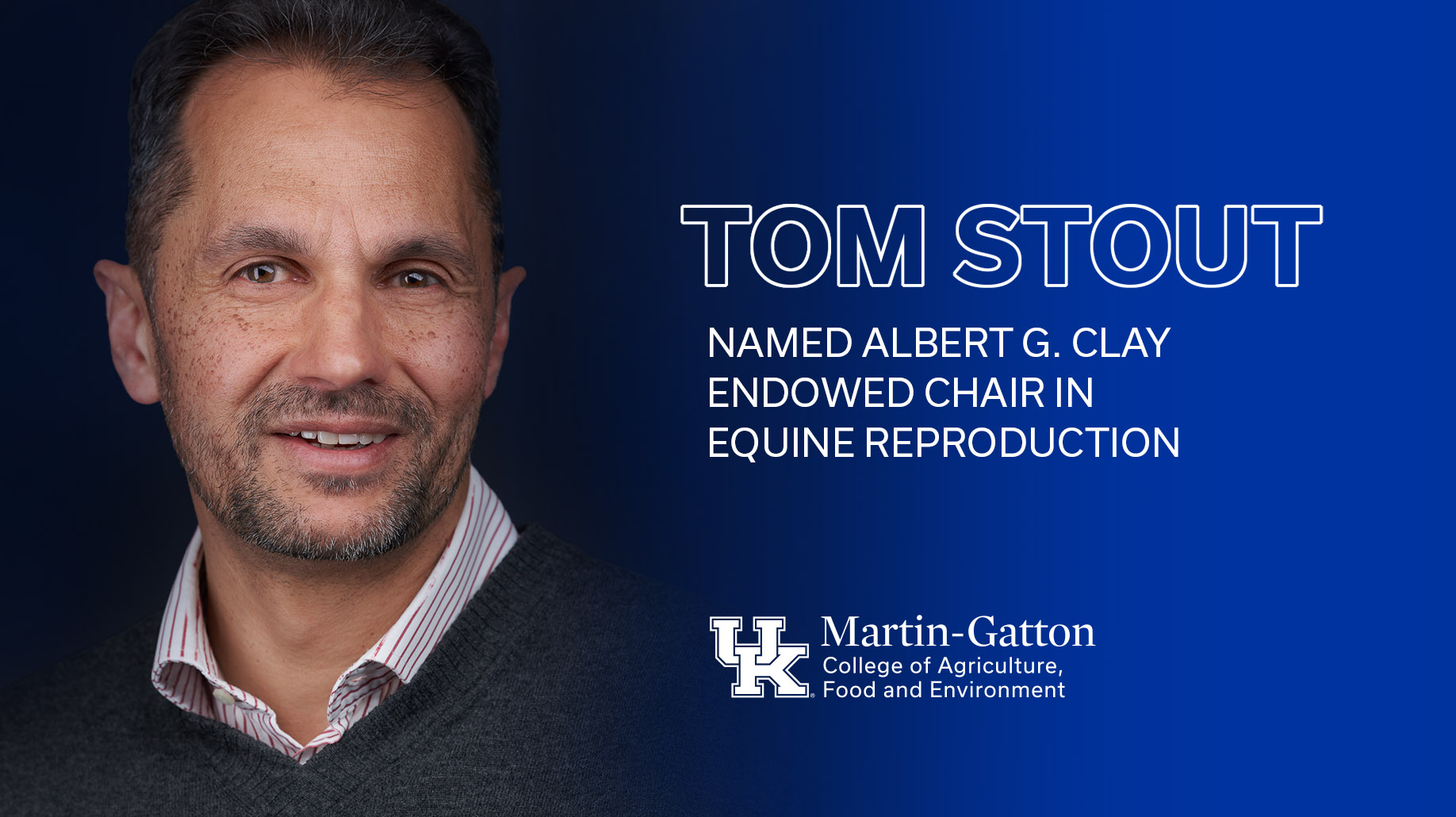 The University of Kentucky Gluck Equine Research Center at the Martin-Gatton College of Agriculture, Food and Environment is pleased to announce the appointment of Tom Stout as Albert G. Clay Endowed Chair in Equine Reproduction. He will officially assume his new role this fall.