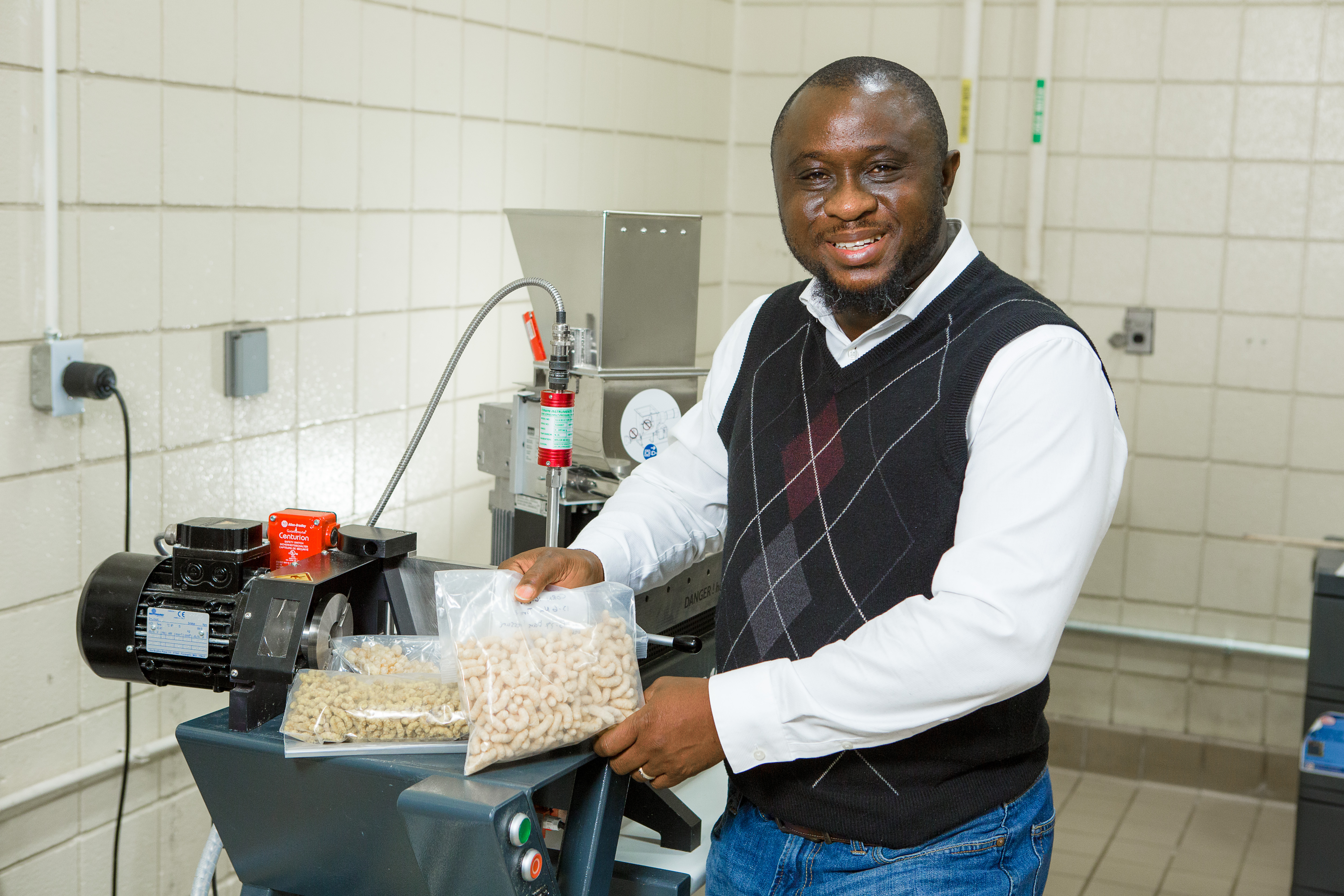 At the University of Kentucky College of Agriculture Food and Environment, Adedeji studies ways to safely and economically add value to agricultural products. His current projects include determining the protein and carbohydrate content of value-added proso millet, studying ways to quicken barleys’ and millets’ abilities to convert starches into sugar, creating value-added products from spent grains leftover from bourbon production, evaluating noninvasive ways to classify grain gluten content and cultivar differences and using wind power to improve solar drying of grains in sub-Saharan Africa.