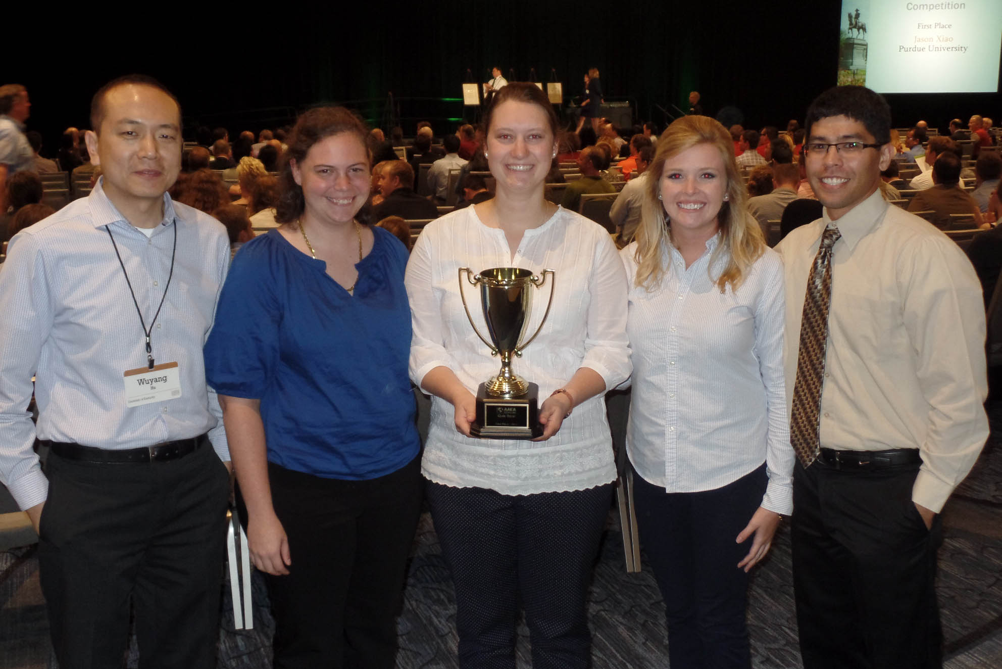 The double elimination tournament was held at the Agricultural and Applied Economics Association’s annual meeting in Boston from July 31-Aug. 2 and featured 34 teams from 18 universities. The members of this year’s championship team are Erica Rogers, Daniella Straathof and April Winebarger. Will Fox, Megan Harper and Rachel Hart comprised the other team from the UK College of Agricultural, Food and Environment.