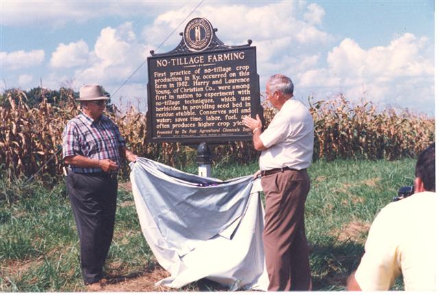 John Young said his father learned about no-till production while on a 1961 farmer field trip to Dixon Springs, Ill., led by Reeves Davie, Christian County agriculture agent with the UK Cooperative Extension Service, and by reading the book, “Plowman’s Folly” by Edward H. Faulkner.