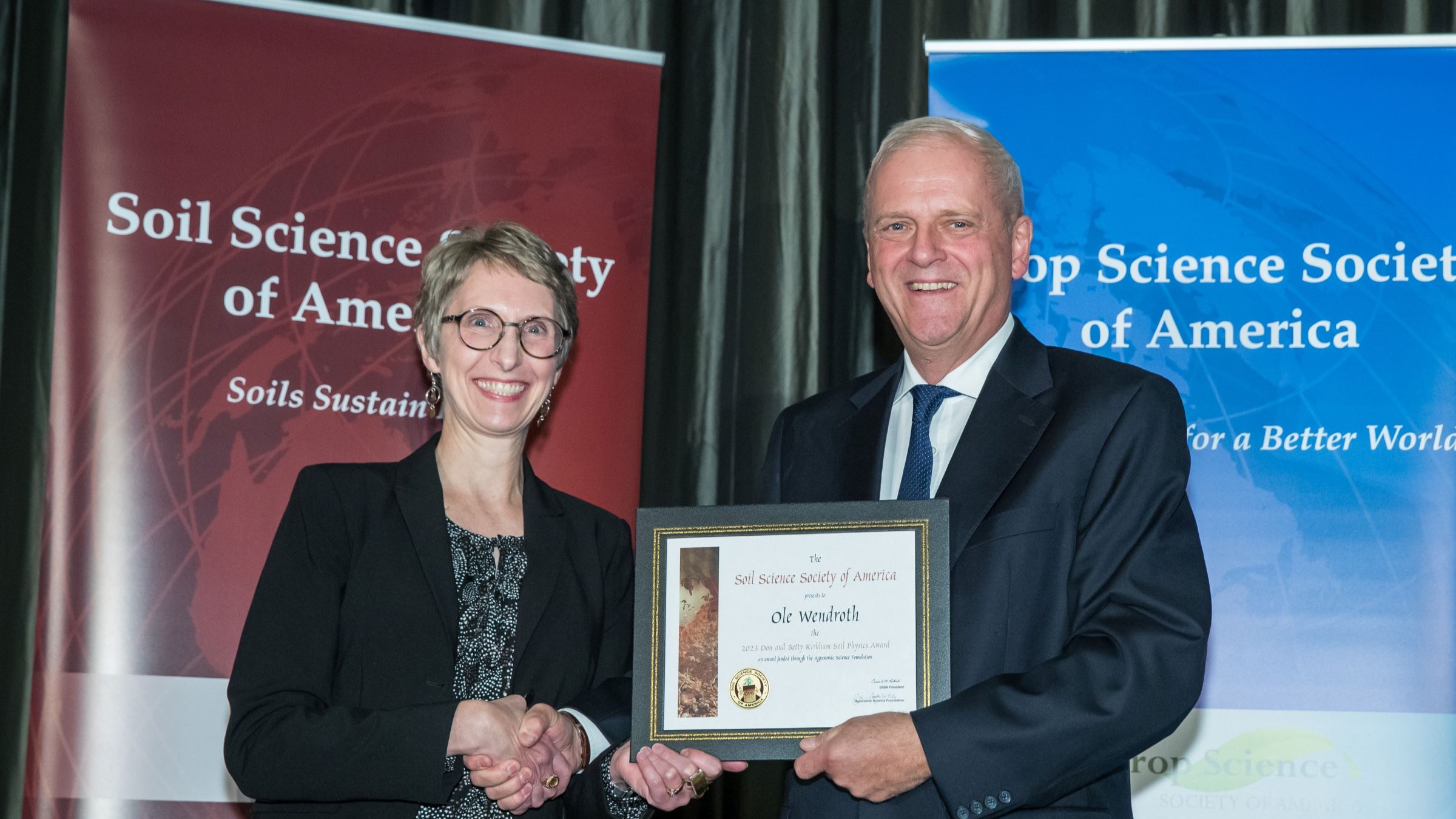 Wendroth's commitment to the soil science community is also evident as former associate editor and technical editor for four journals published by the Tri-Societies and as the current chief editor of a top-ranked soil science journal, Soil & Tillage Research. He is also a past president of the SSSA.