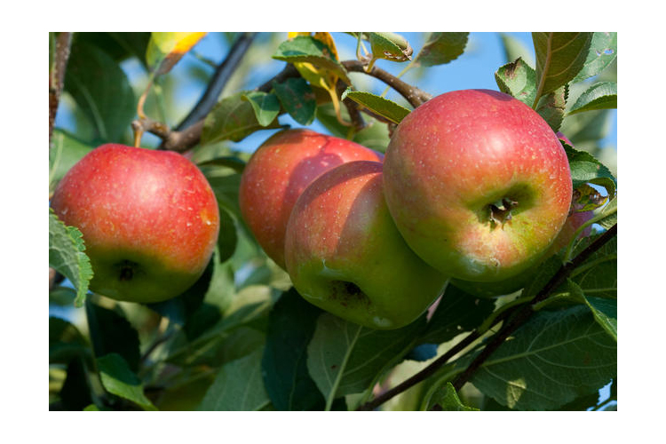 Codling moths are the most devastating insect pests of apples. Each spring, adult moths lay their eggs on or around developing apples. When the eggs hatch, the larva, or worm, tunnels into the apple, where they feed on the fruit and develop for three to five weeks. Then they exit the fruit to pupate in a nearby location over the winter.