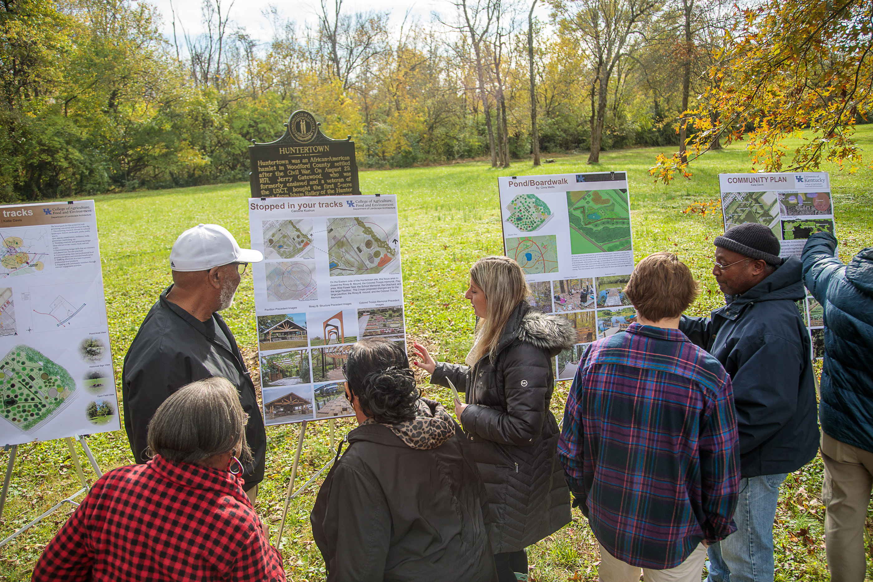 “We wanted to bring attention to some of the great spaces that Huntertown offers,” said Jayoung Koo, UK associate professor of landscape architecture who led the project. “This is a really historic area which many people in the surrounding area may not even be aware of. I really think this is a space that will bring people together. It also gets our students to think creatively to improve upon the area’s already existing landscape and history, while working with community leaders and stakeholders to create what is best for the park.”