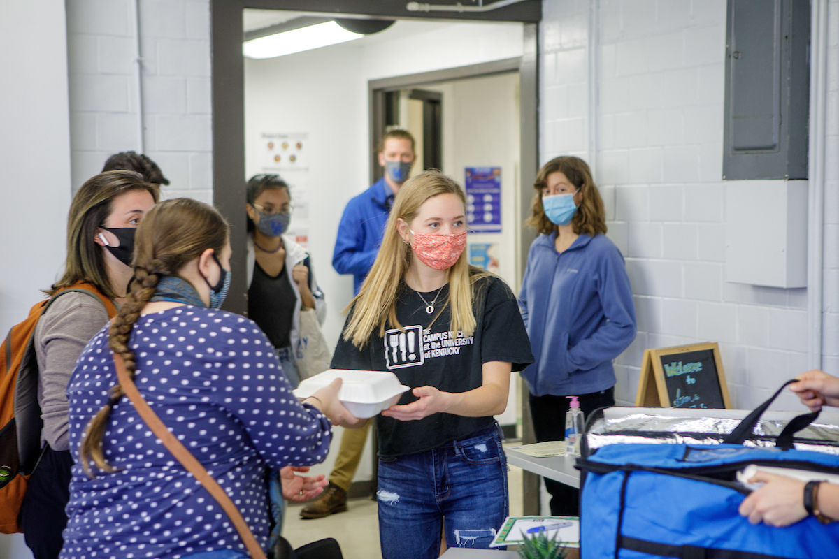 Farm-to-Fork is one of CKUK’s largest efforts that recovers unused food and then repurposes the otherwise wasted food into nutritious meals for UK students. The student-led group currently provides a nutritious meal to about 100 of their peers each Wednesday. Before the pandemic, Farm-to-Fork was serving approximately 150 students weekly and will continue to increase the number of meals as more students return to campus. Any UK student can pick-up the free, nutritious meal between 11 a.m. and 1 p.m. and take it to go or eat in the socially distanced dining area.