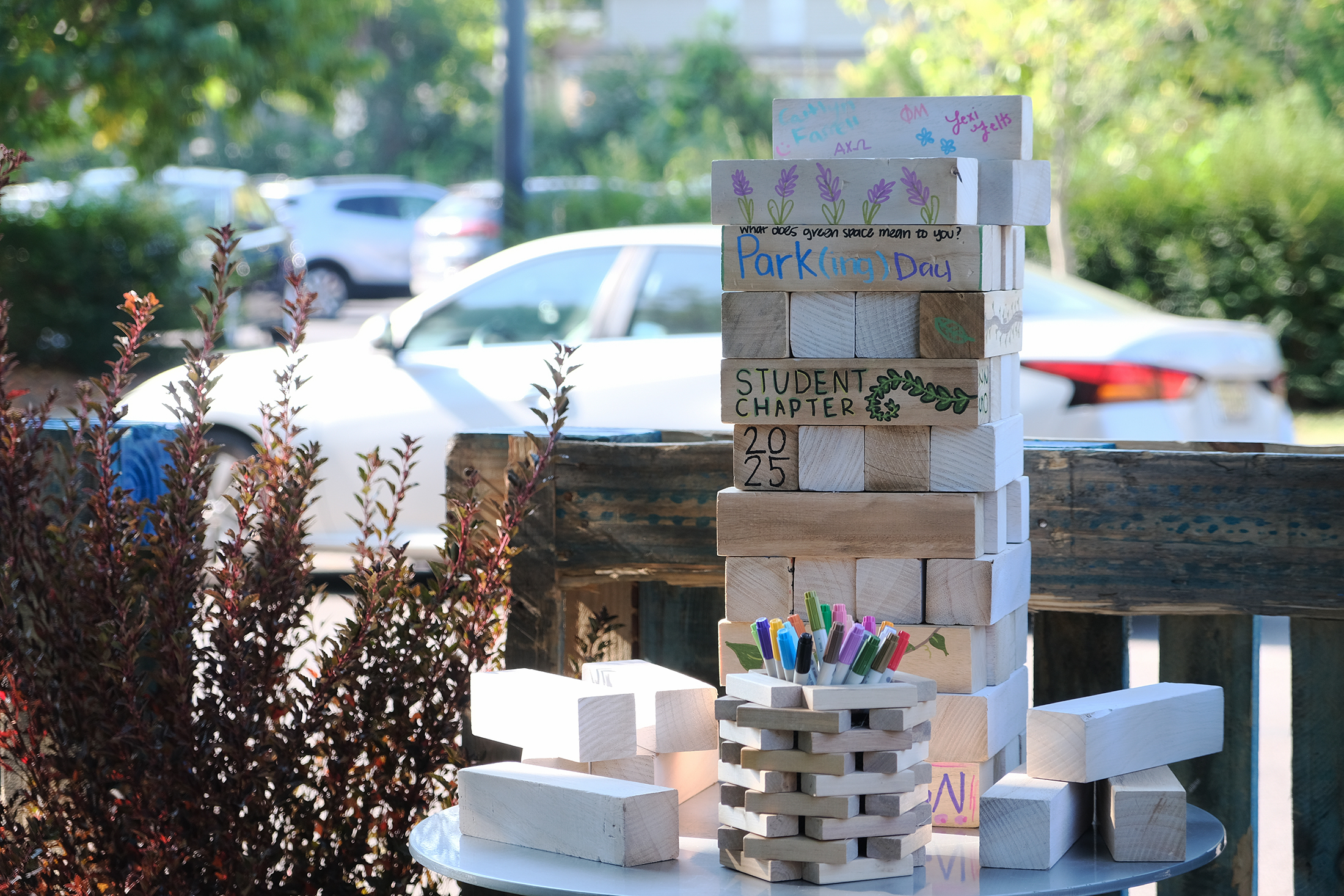 “We wanted this event to be about how a variety of students built [this space] together, and the Jenga tower is a smaller scale representation of that joint effort,” said Anna Melchers, a fourth-year landscape architecture student and UK ASLA president. “We ended up with blocks from students in every major in Gray and students from outside of the building, even people outside of the university.”
