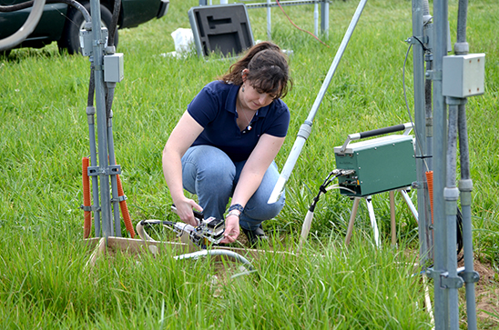 Then UK graduate student Marie Bourguignon, UK agroecologist Rebecca McCulley and Randy Dinkins, a scientist with the U.S. Department of Agriculture’s Forage-Animal Production Research Unit, looked at the potential effects of warmer and wetter conditions on four different genotypes of KY 31 tall fescue, one of the most common grasses used in pastures in Kentucky and the Southeast. Their U.S. Department of Energy-funded study looked at climate change effects on the common endophyte, a fungus found in most tall fescue that helps the plant grow better and tolerate stressful conditions. The fungus is also an insect deterrent, but it can be toxic to livestock. About 75 percent of all tall fescue in the United States is infected with the common strain of the endophyte.