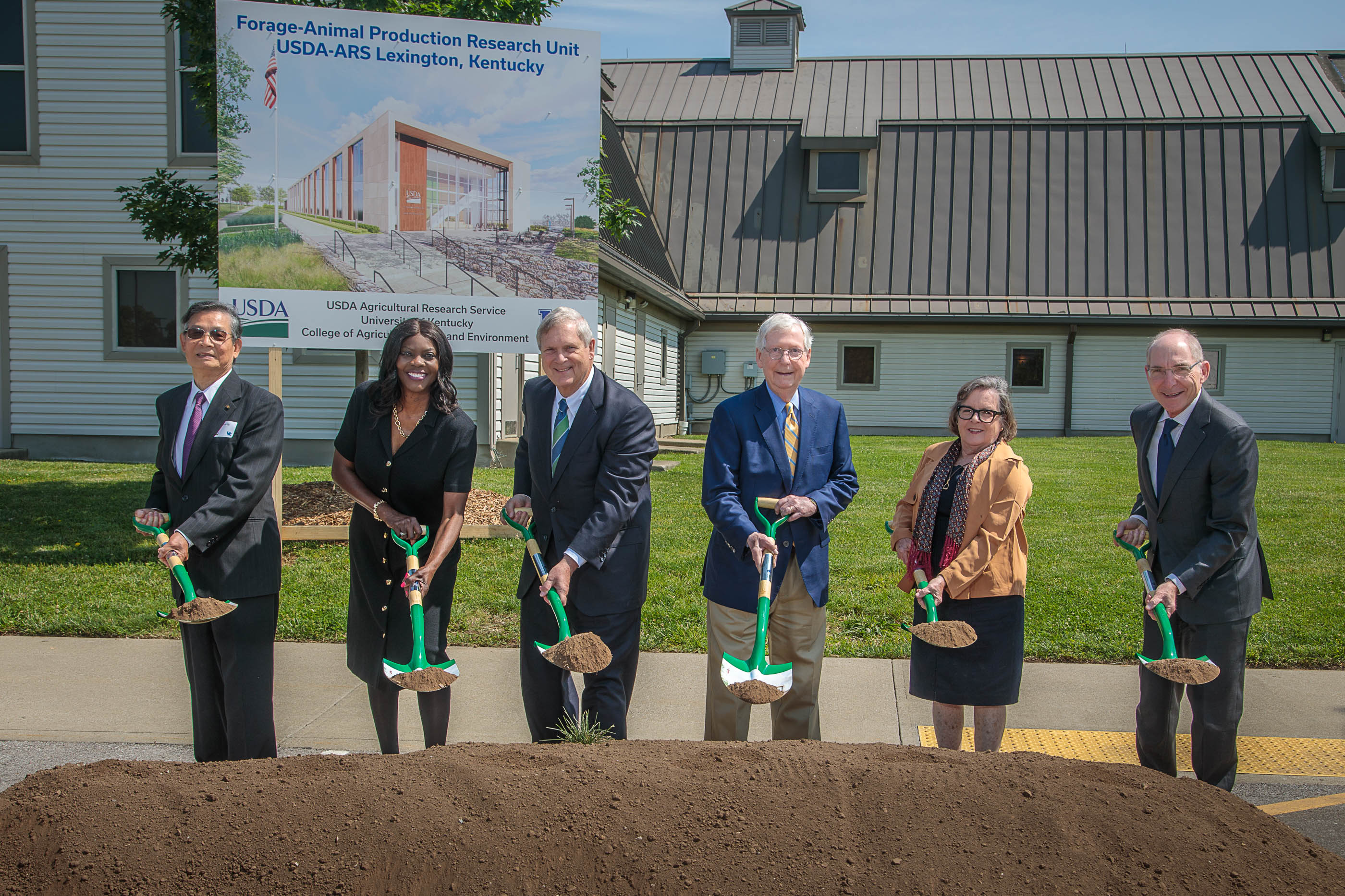U.S. Senator Mitch McConnell joined officials from the U.S. Department of Agriculture's Agricultural Research Service (ARS) Secretary of Agriculture Thomas Vilsack and the University of Kentucky’s College of Agriculture, Food and Environment (UK-CAFE) today in a groundbreaking ceremony for a new $65.9 million Forage Animal Production Lab on UK’s campus.