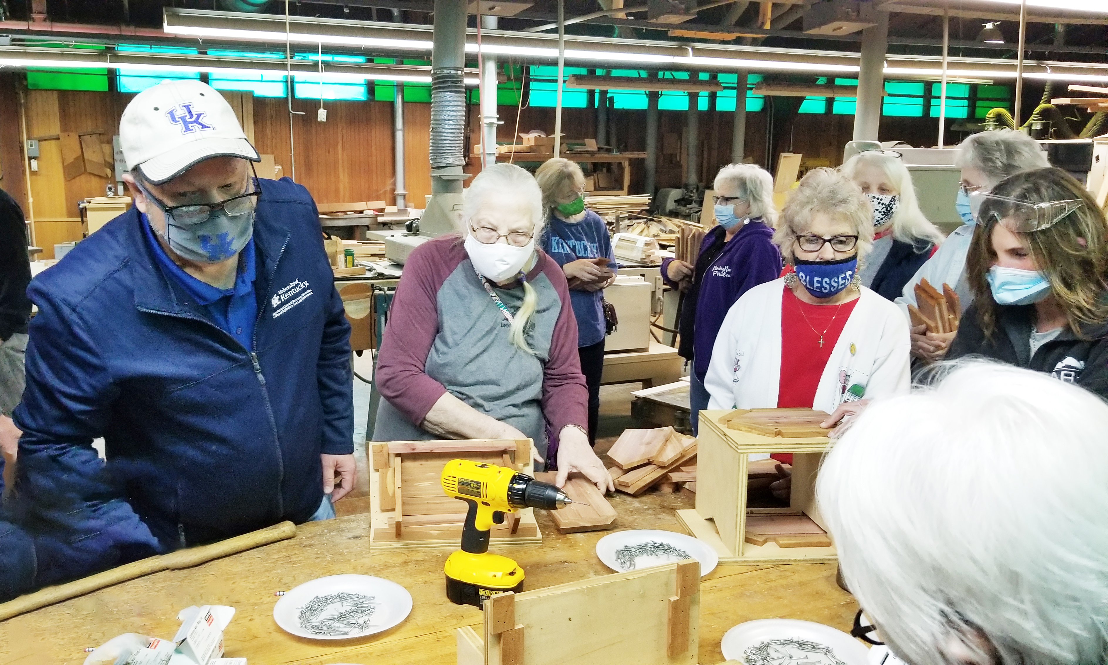 “This is something we do quite a bit for extension,” said Bobby Ammerman, UK extension associate in wood products with Department of Forestry and Natural Resources and assistant director of RCARS. “It’s great to get groups back to doing this. Occasionally, we also take the materials we need to visit other parts of the state and allow the group to work on their projects outside of the wood center. We allow our classes here to make all sorts of products from bird feeders to cutting boards to Shaker boxes.”