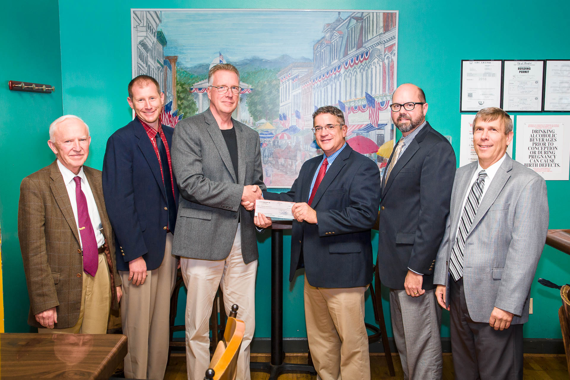Photo caption: Lloyd's of London presented a check for $50,000 to fund the Equine Disease Quarterly, published by the UK Department of Veterinary Science, Maxwell H. Gluck Equine Research Center. Pictured (L to R): University of Kentucky College of Agriculture, Food and Environment representatives Dr. Peter Timoney, Veterinary Science Faculty; Dr. Alan Loynachan, Associate Professor Veterinary Diagnostic Laboratory; Dr. David Horohov, Director of the Gluck Equine Research Center and Chair of Veterinary Medicine at the University of Kentucky; Lloyd's of London representatives: ; Pat Talley, Regional Director Central US Lloyd's America; William Wallace, V.P. Finance & Administration Lloyd's Kentucky; and Ken Maier, Assistant V.P. Lloyd's Kentucky
