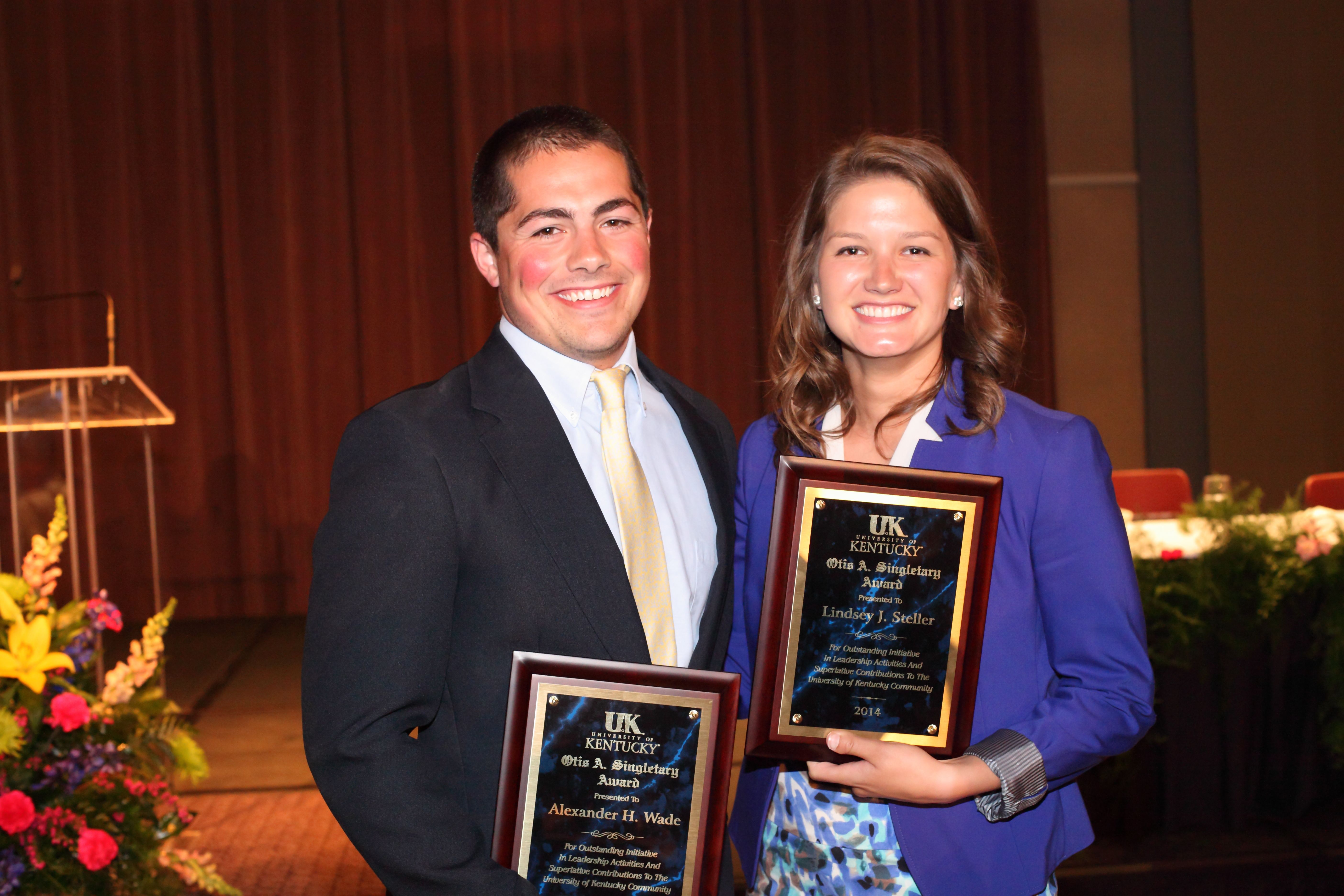 The evening culminated with the awarding of the Otis A. Singletary Outstanding Senior Award. Given to a senior man and woman, this award, named after the former UK president, was established in 1978 and was the first award recognizing overall student leadership at UK. Students nominated for this award have shown outstanding leadership while attending the University of Kentucky, made significant contributions to academics and are dedicated to service through campus and community involvement.