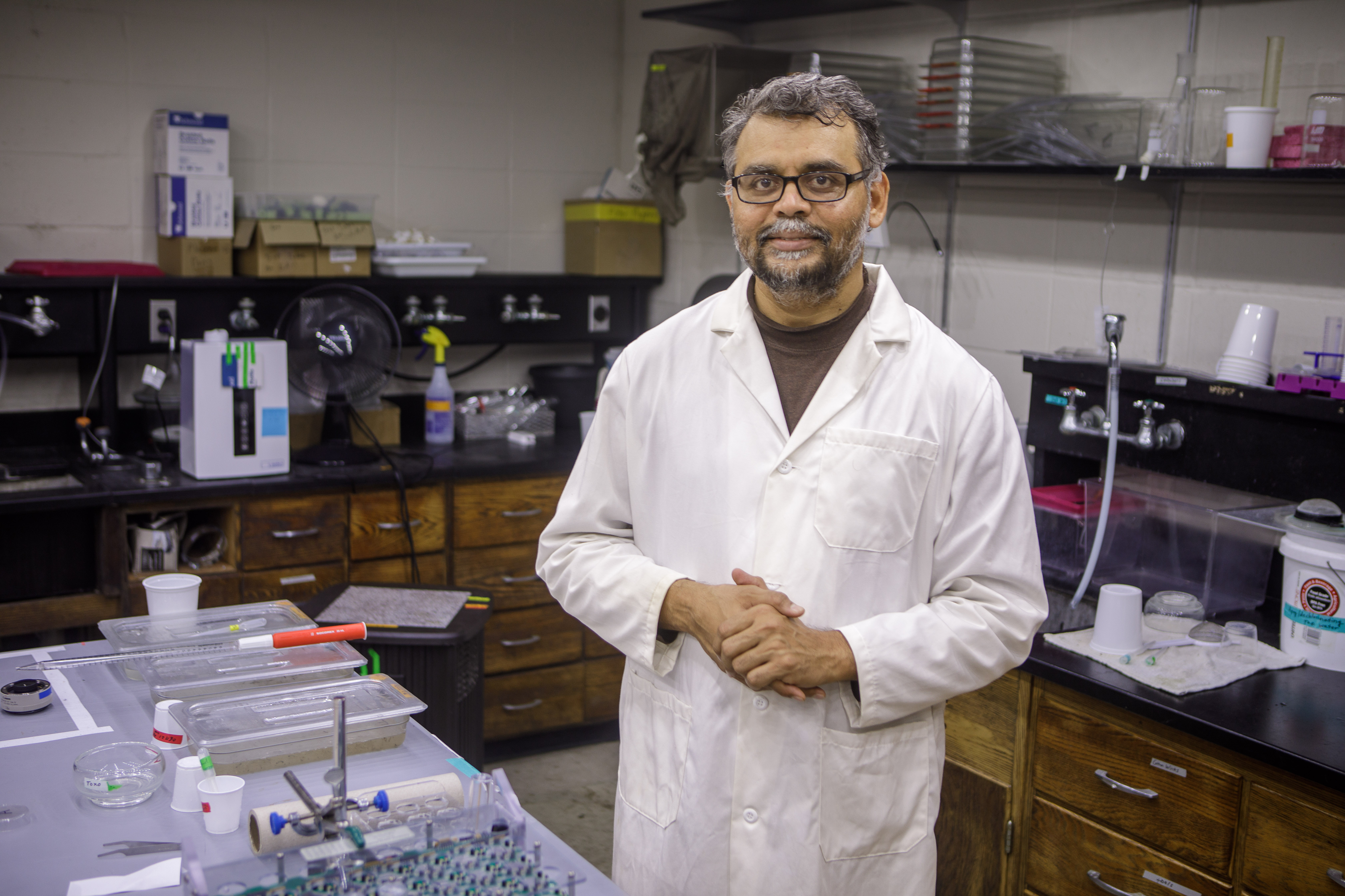 Syed is also working with mosquitoes to see if he can use different species against one another. In his laboratory, he is studying Toxorhynchites mosquitoes, which are among the largest mosquitoes in the world. While their size may make the average person shudder, these insects do not bite humans. These tree hole mosquito larvae feed on the larvae of other mosquito species which allows them to get the nutrition they need to reproduce. Syed is studying the factors that mediate these interactions so that tree hole mosquitos could be used for effective biological control. In his lab, he is specifically studying their ability to feed on Aedes aegypti mosquitos, which transmit diseases like Zika, dengue and chikungunya.